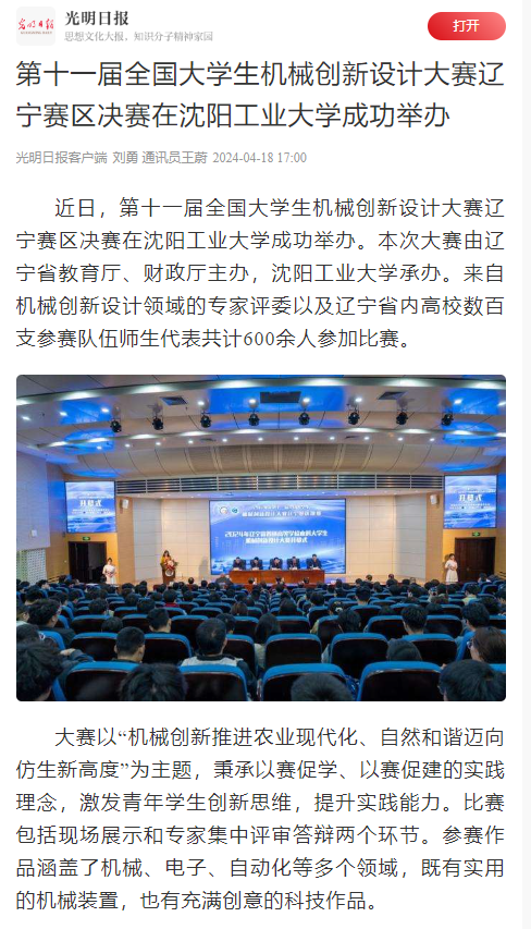 【光明日报客户端】第十一届全国大学生机械创新设计大赛辽宁赛区决赛在国产高清在线精品一区二区三区成功举办-国产高清在线精品一区二区三区官方网站