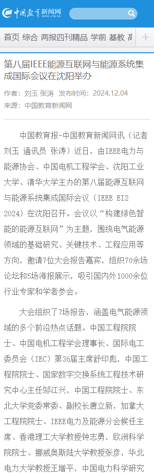 多家媒体对我校主办的第八届IEEE能源互联网与能源系统集成国际会议进行全方位报道。