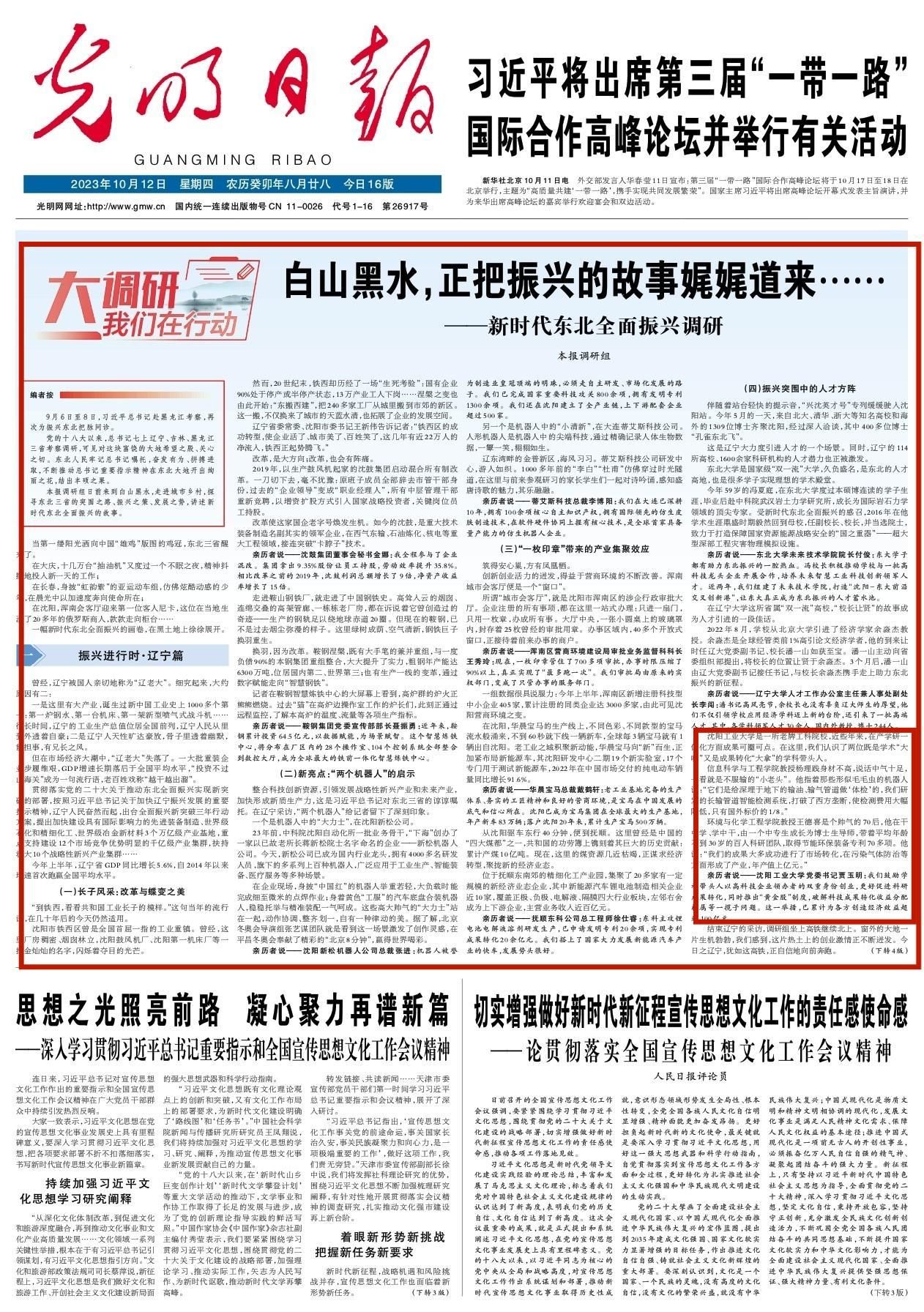 10月12日,《光明日报》头版以《白山黑水,正把振兴的故事娓娓道来……》为题,向全国人民展现了新时代东北振兴的宏大叙事,展现了东北人民牢记嘱托、感恩奋进、推动发展的精神气象和生动画面。文中对我校探索新举措,集聚人才科技优势,在推动工程技术创新和产业发展上走出一条产学研协同发展的新路径,赋能东北振兴发展情况进行宣传报道。