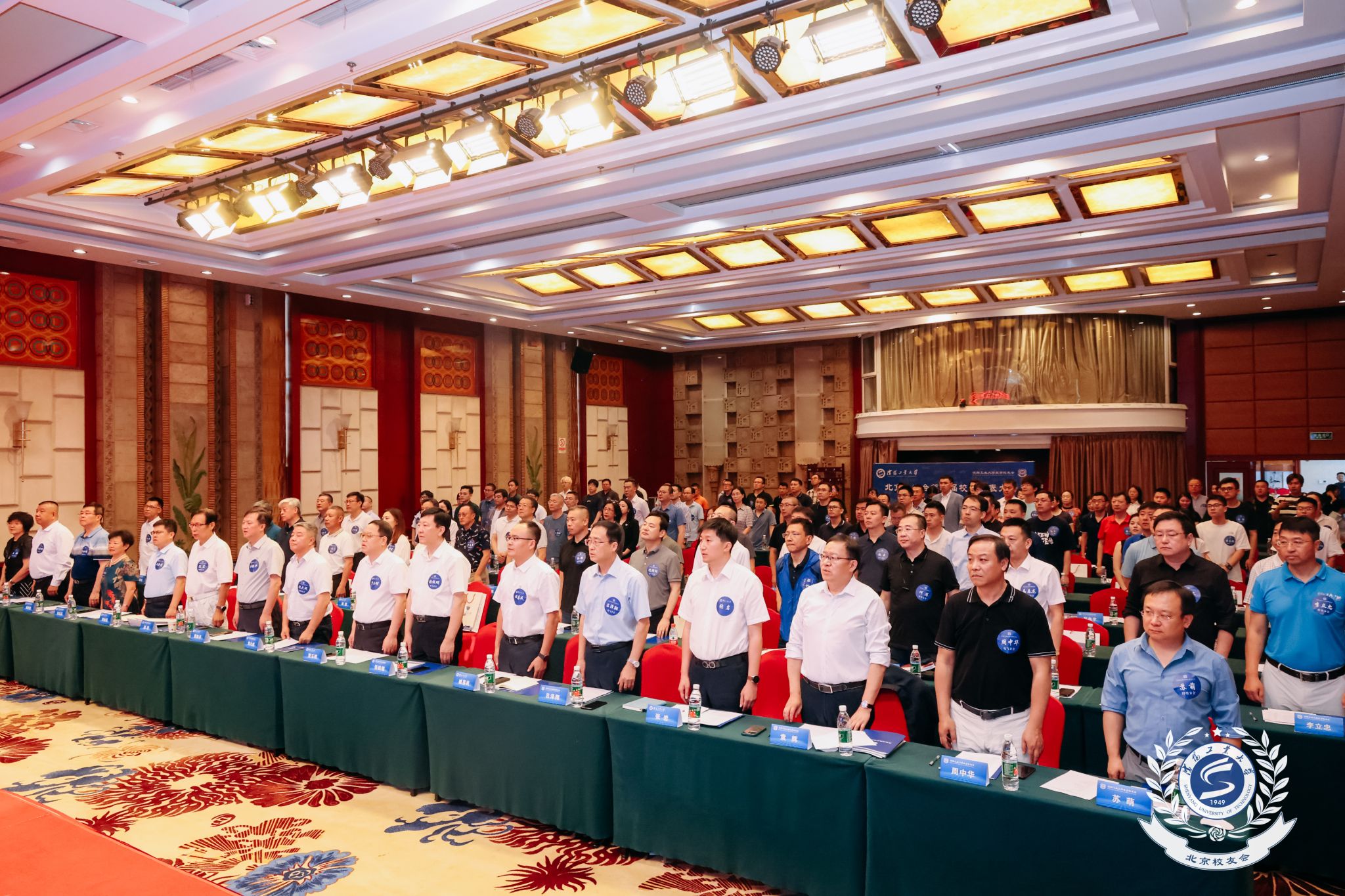 贾玉明书记分别为第八届北京校友会名誉会长陈宏(1973级铸造专业)、刘大成(1985级机制专业),以及新一届理事会成员颁发聘书并授旗。