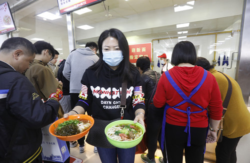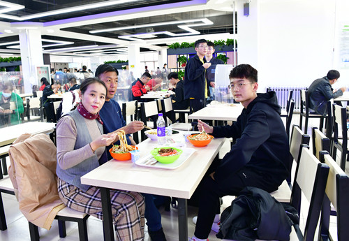 临近中午,学校依旧准备了传统的迎新家宴“迎新面”,分为炸酱面、肉丝面、牛肉面等多种口味,让新生尝到了家的味道,融入了家的氛围。新生专属的“迎新面”领取券上写着的“一碗迎新面工大一家人”,也让新生倍感亲切。