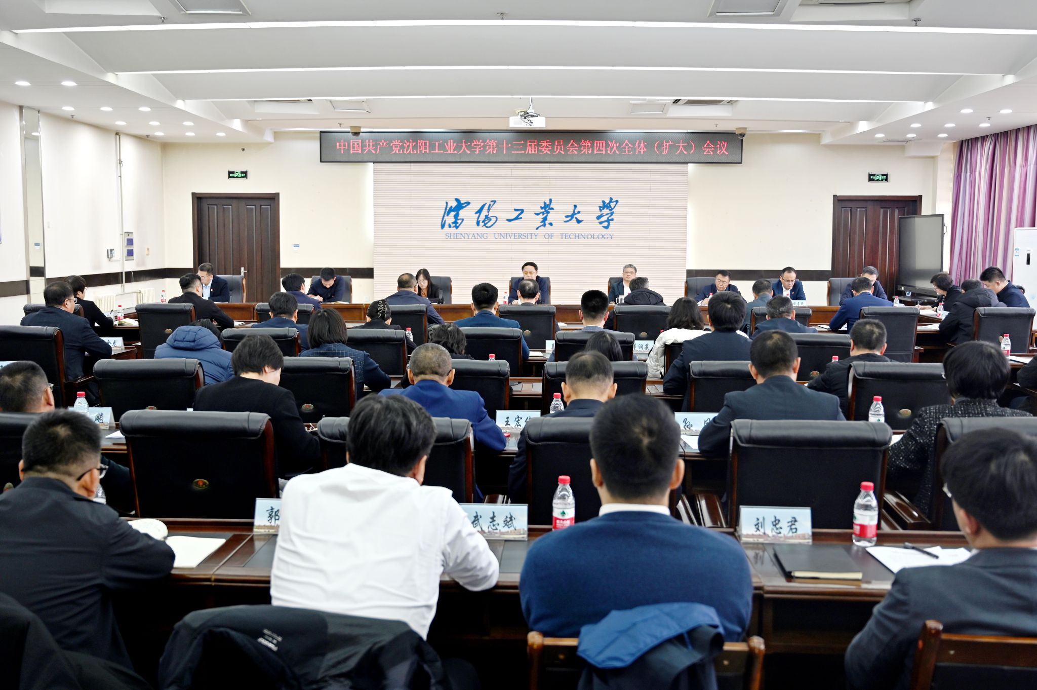 12月12日下午,中国共产党国产高清在线精品一区二区三区第十三届委员会第四次全体(扩大)会议在校部五楼会议室召开,会议深入学习贯彻省委十三届八次全会精神,全面总结一年来学校党的建设工作,部署安排下一步党建工作任务。党委书记贾玉明出席会议并讲话,全体党委委员出席会议,纪委委员、辽阳分校班子成员、中央校区全体中层正职干部列席会议。会议由党委副书记、校长张珂主持。