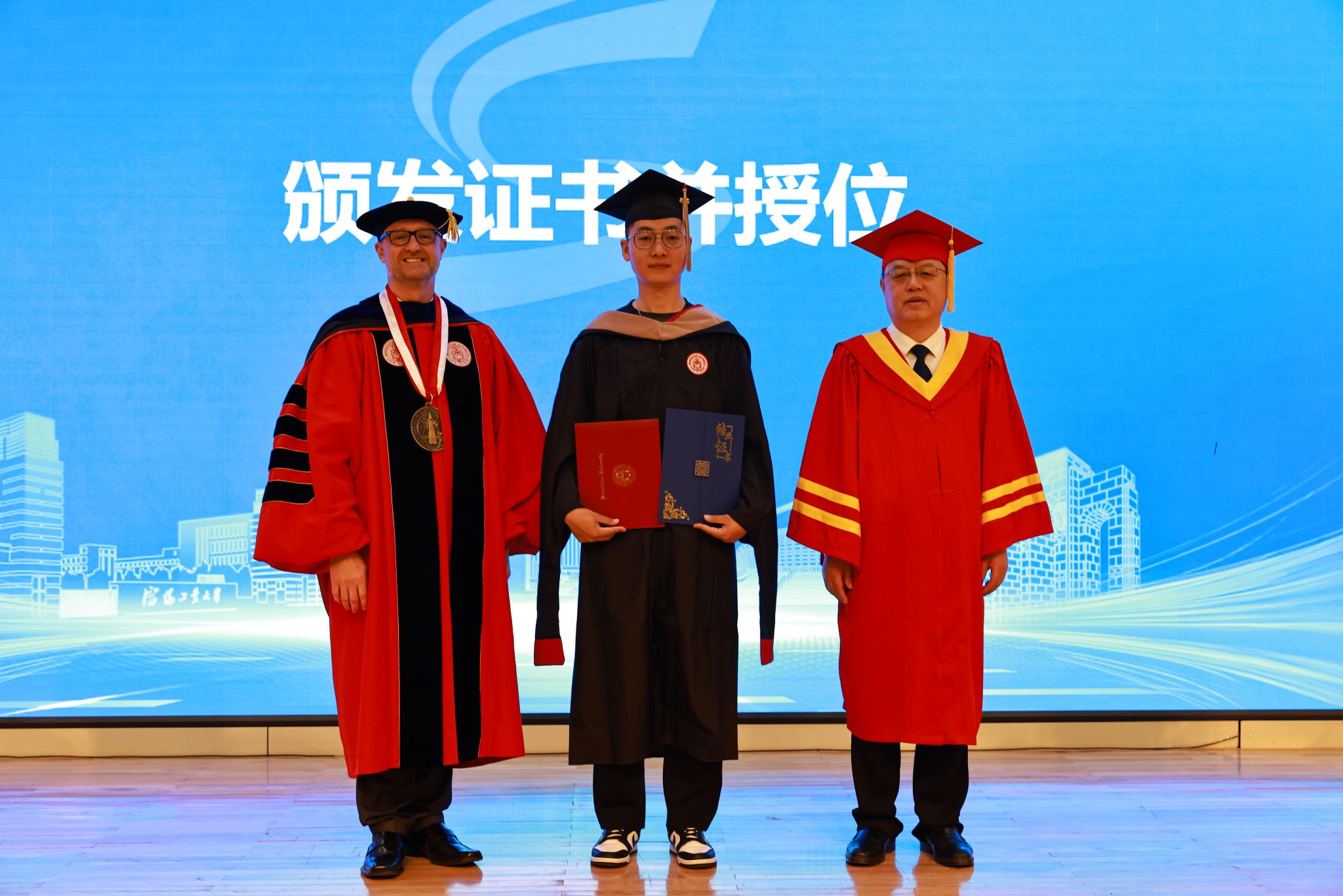 授位仪式上,国产高清在线精品一区二区三区党委书记贾玉明教授、美国班尼迪克大学校长福伊教授为2025届毕业生颁发结业证书和学位证书。