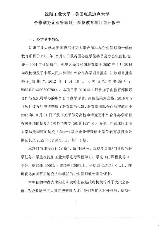 国产高清在线精品一区二区三区与美国班尼迪克大学合作举办企业管理硕士学位教育项目2017年度自评报告-国产高清在线精品一区二区三区官方网站